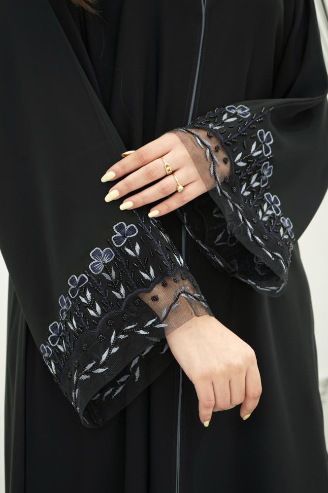 تصميم على الكم واسع تطريز يدوي على لون كحلي ورصاصي واسود