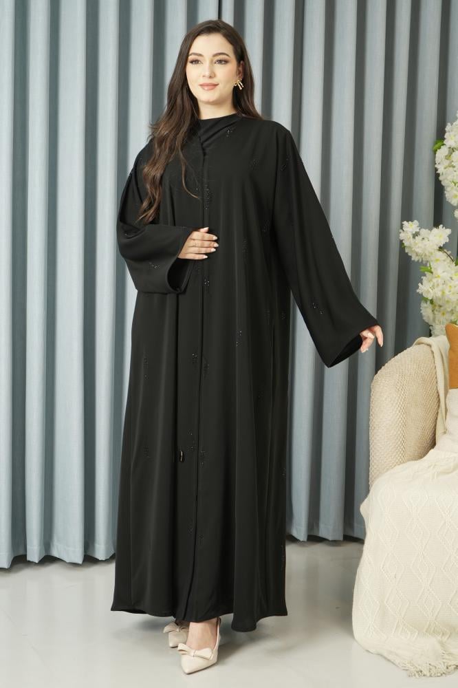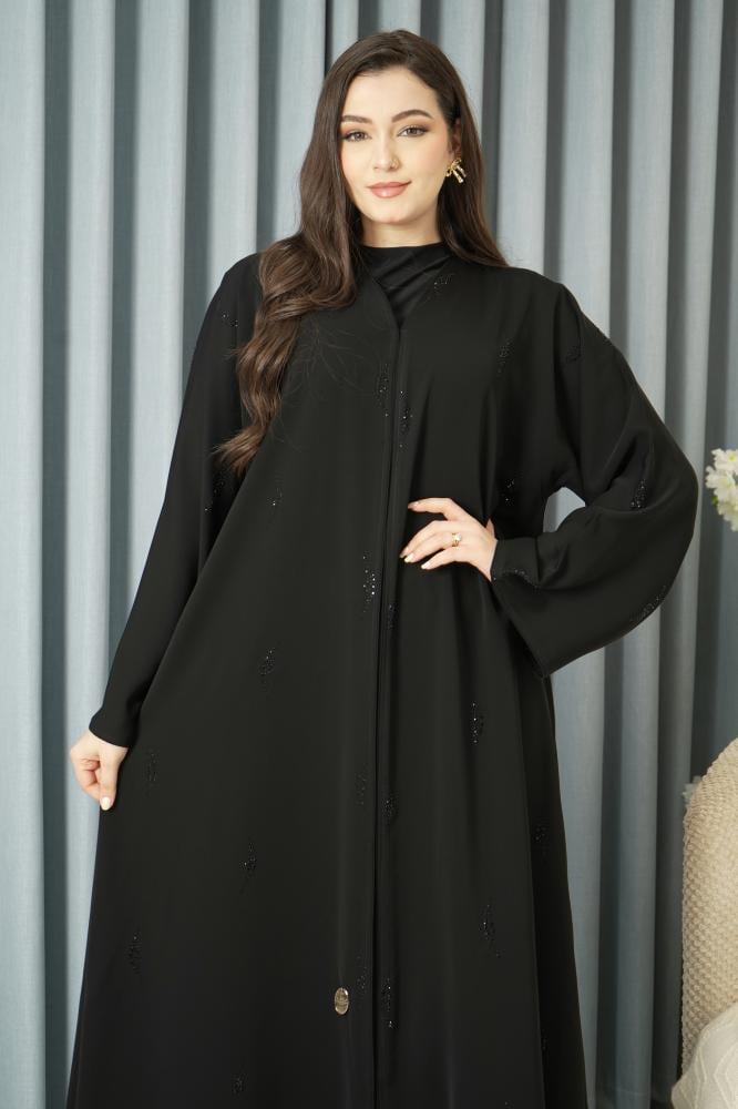 مزينة بـ شغل فصوص بشكل هلال يعطي لمسة فخمة وناعمة بنفس الوقت، موديل مطلوب لتصميمه الجميل ولمسات الذوق فيه.