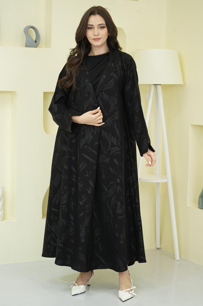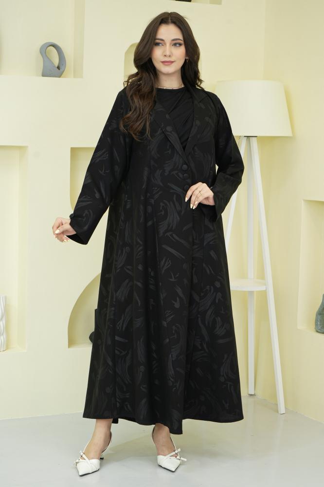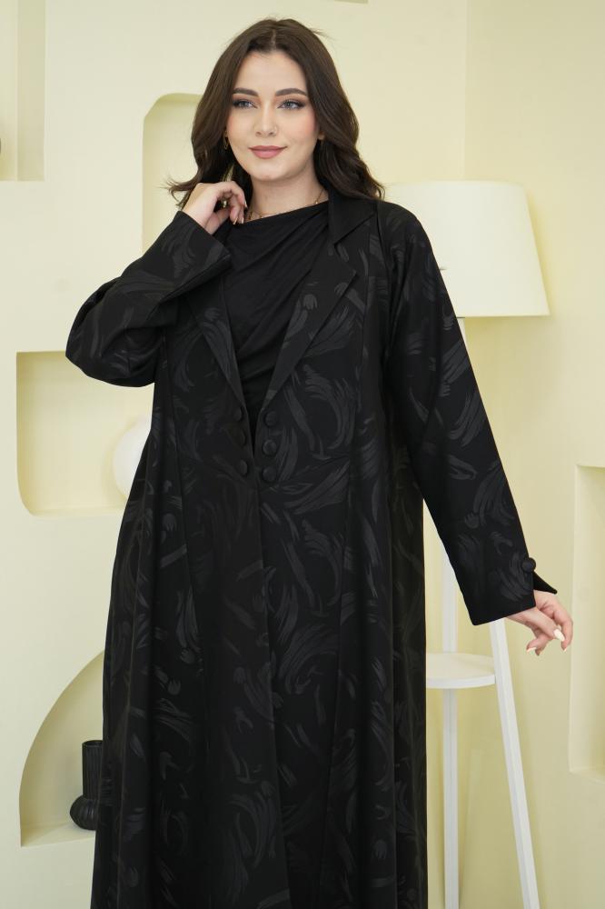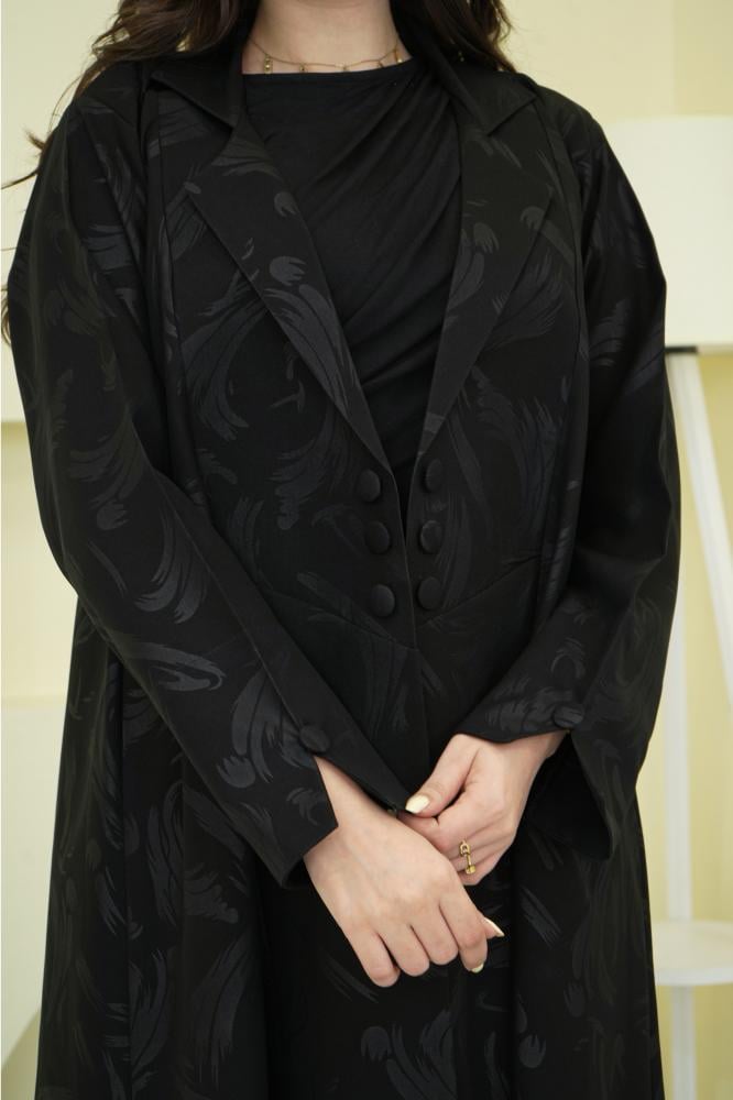 عباية فخمة بتفصيل بليزر مفتوح بقلاب يشبه شكل الجاكيت العصري، تضيف لمظهرك لمسة من الشياكة والعملية في آن واحد. تصميم أنيق يناسب إطلالات العمل والمشاوير اليومية والمناسبات الخفيفة.