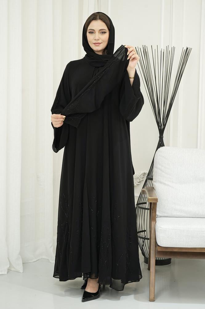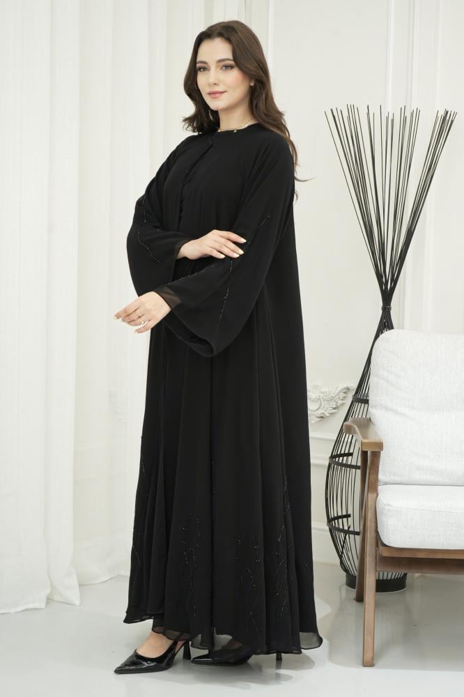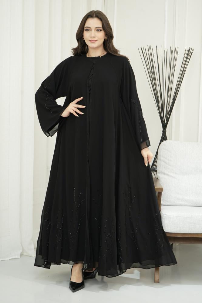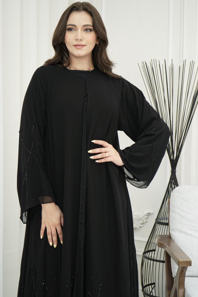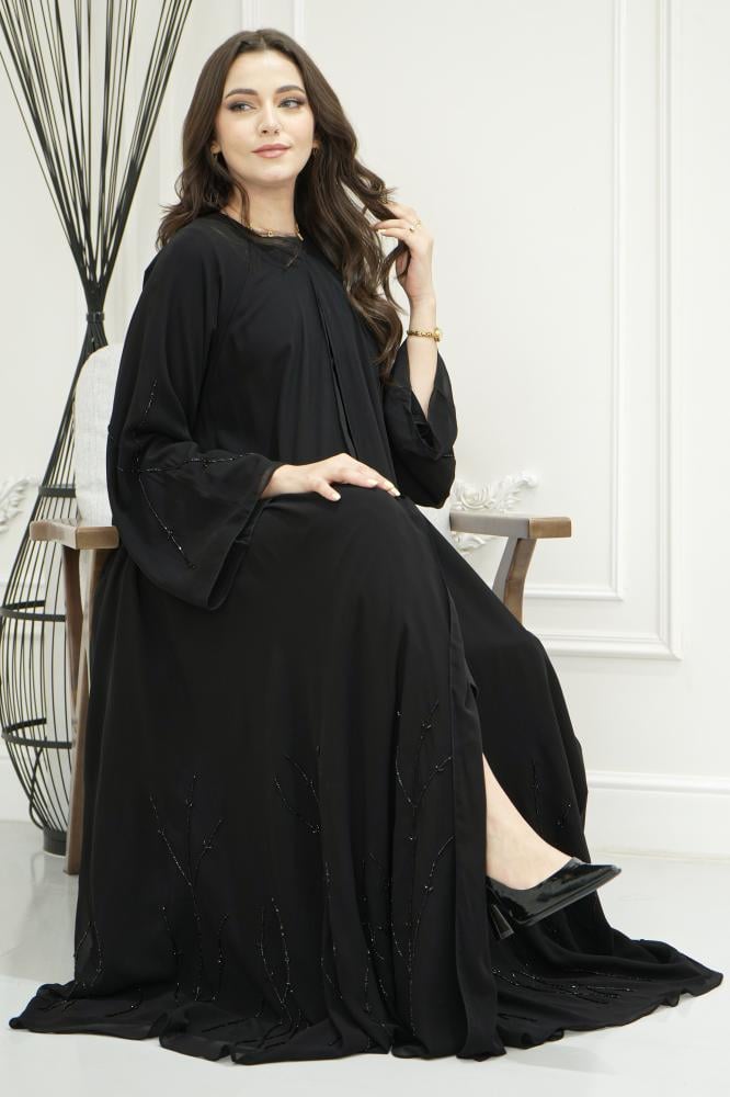 مطرزه تطريز على العباية بشكل جذاب متناسق معا قصة العباية باكمام واسعه وتطريز جميل متناسق معا مودل العباية
